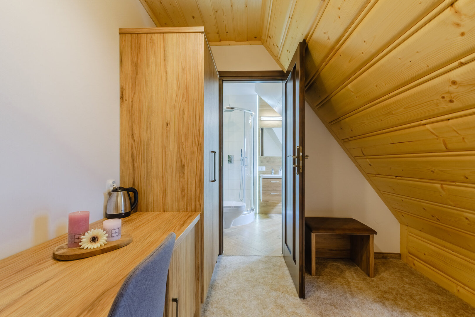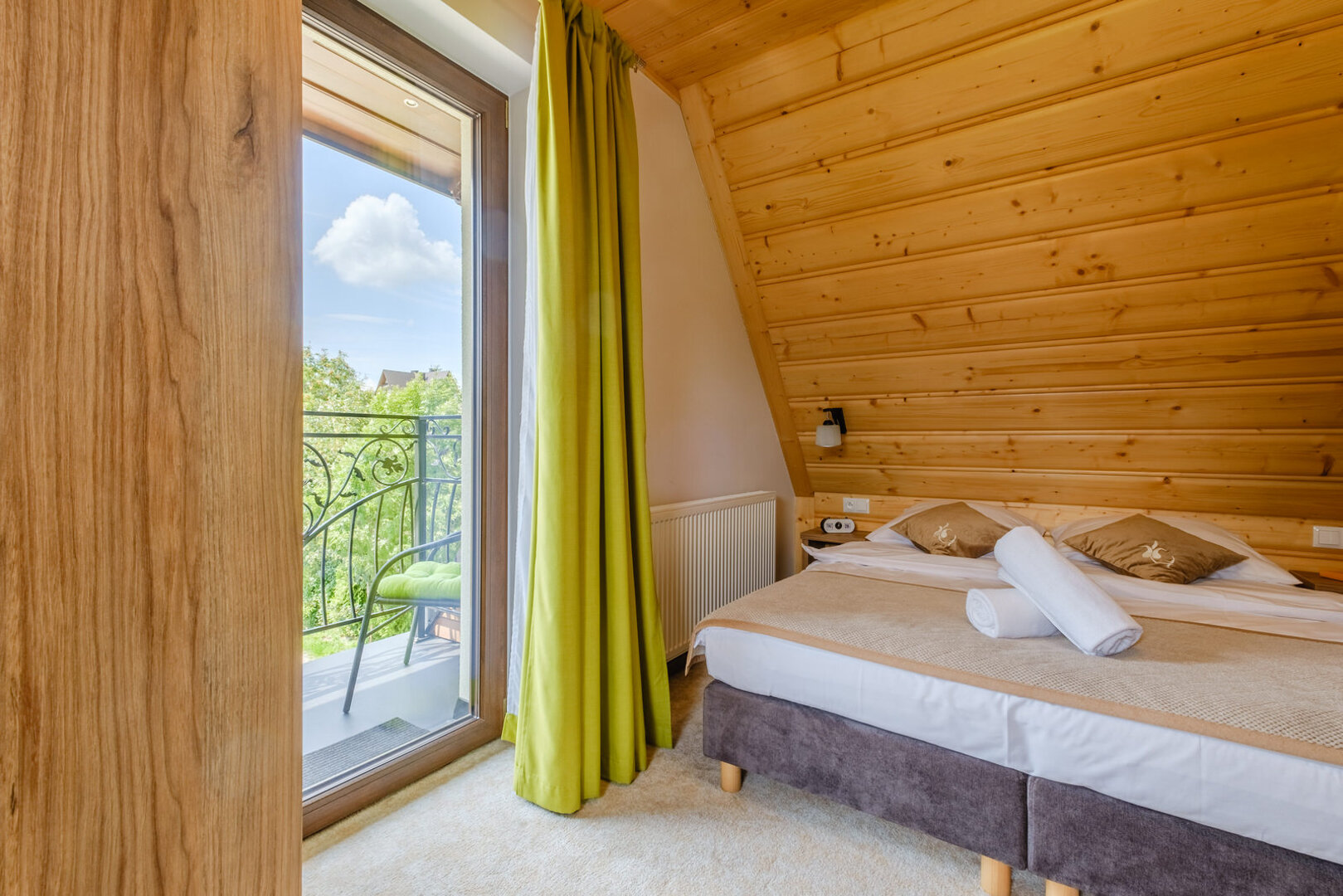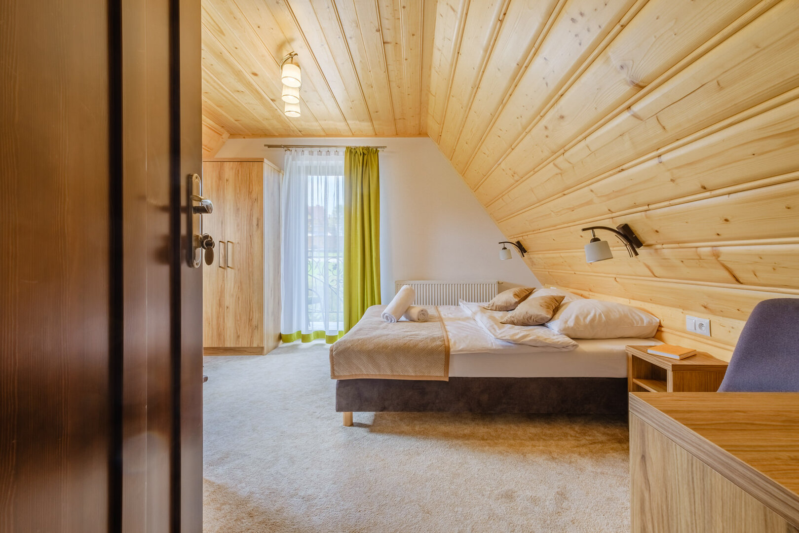 - Komfortowe łóżka: Pokój wyposażony jest w łóżko małżeńskie. Istnieje również możliwość wstawienia dostawki dla dodatkowej osoby.